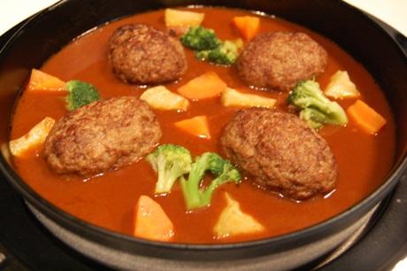 自家製デミグラスソースをたっぷりと使い、テーブルで鉄鍋を温めながらお召し上がりください。